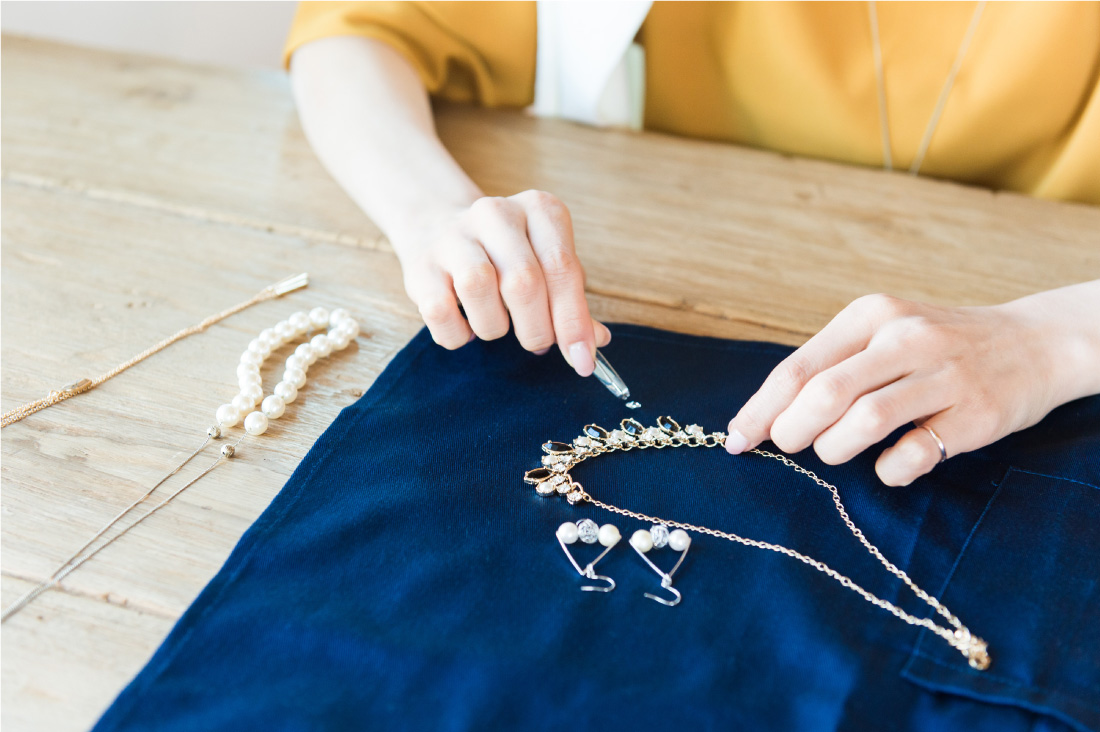 あなたの好みに合わせて、制作者がストーンを1粒ずつ敷き詰めていきます。